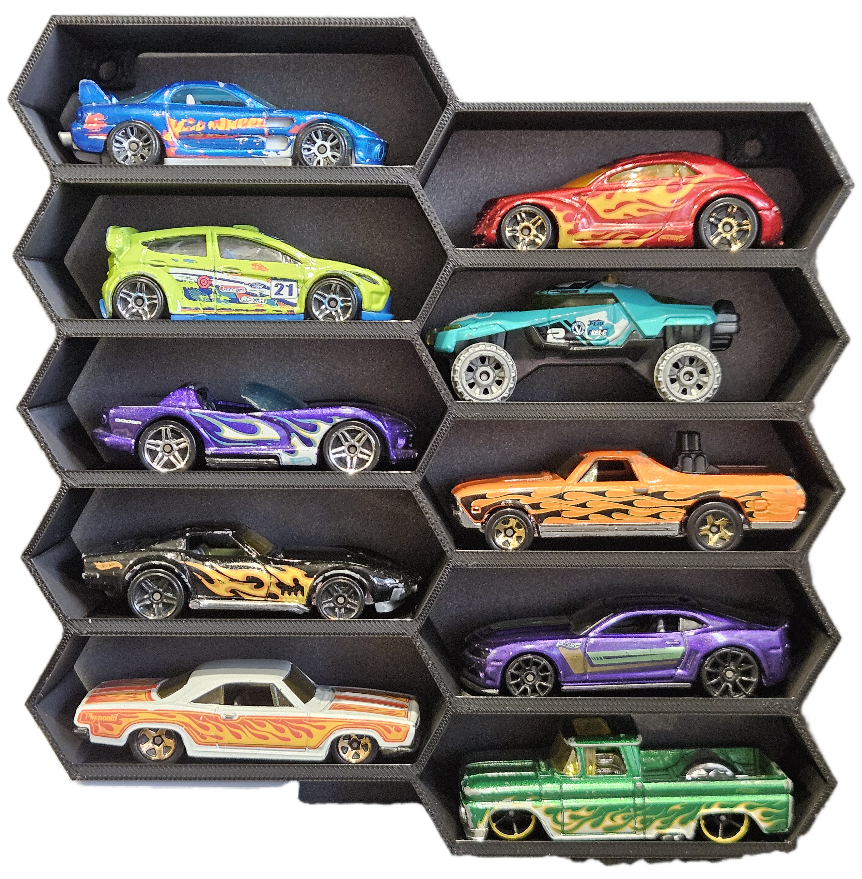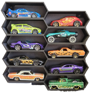 Pozwala na umieszczenie samochodzików w widocznym miejscu na ścianie. Dzięki czemu łatwo je wyjąć, nie niszczą się wymieszane w pudełku oraz łatwo można zaprezentować je gościom.